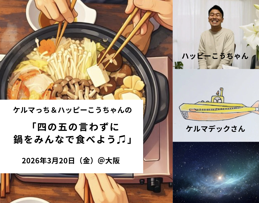 略してまさにハッピーの会を大阪寝屋川の素敵な「塩と発酵食 宙」さんで開催します。人生って面白いなって思える時間をみんなで過ごしましょう!